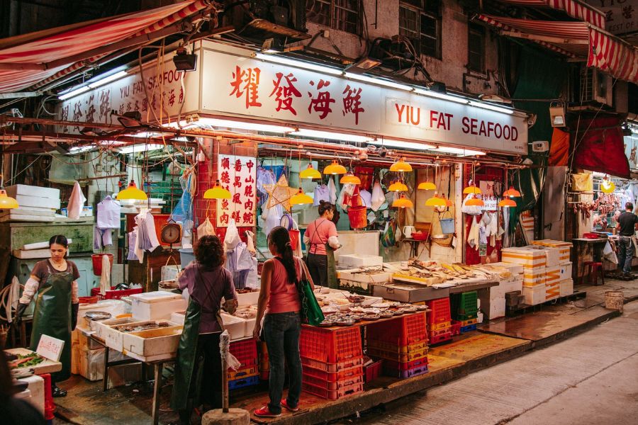 Shanghai Street offers a quieter and more traditional alternative. The shops here specialize in kitchenware, tea sets, and items connected to everyday life in Hong Kong. In the evening, small restaurants and bakeries remain open, providing a comfortable place to stop for a light meal. The slower pace of this area makes it appealing for visitors who prefer a more relaxed environment.